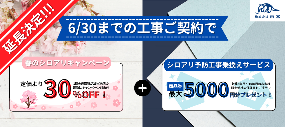 この機会に、雨宮へシロアリ予防工事をご依頼いただくと、商品券5,000円分をプレゼント!
