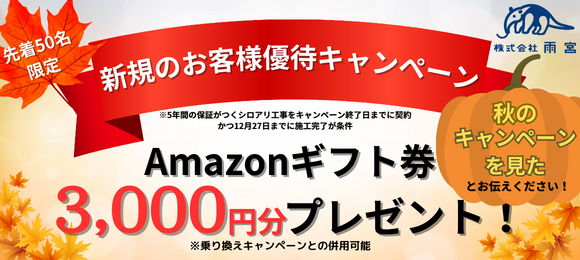 また、シロアリ駆除の優良業者が加入する公益社団法人日本しろあり対策協会では、現在は基準価格を示しておりませんが、以前は1㎡あたり3,000円程度を基準として打ち出しておりました。